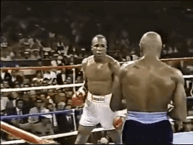 Leonard looks incredibly sharp for a man who was knocked down in his last fight three years ago by a mediocre fighter named Kevin Howard. Leonard is spinning off the ropes, his legs look good and his combinations are crisp. And because Hagler is chasing him. Leonard is dictating the pace of the fight.